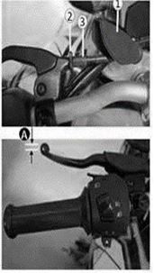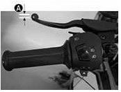 - Move the handlebar to the straight-ahead position. Lightly pull the clutch lever and ascertain the clutch lever play A.